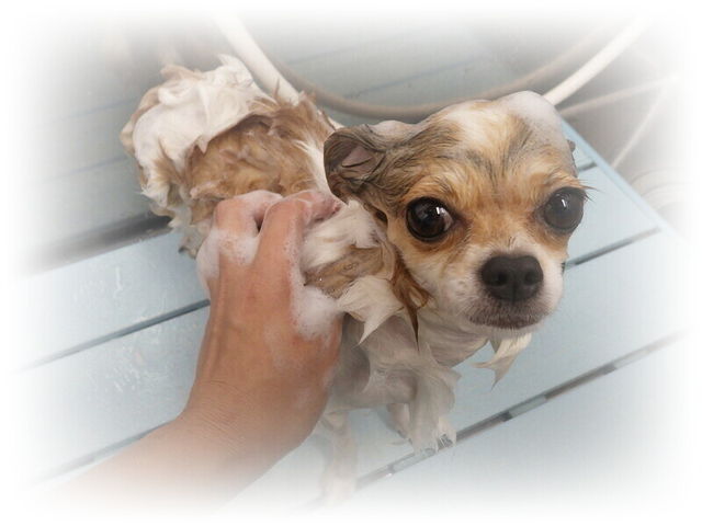 お泊り中にシャンプーしました、